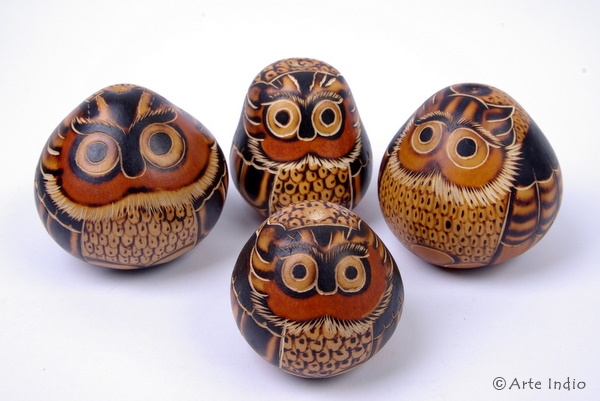 The owl rattles are made of natural pumpkin, so each piece is unique. Each rattle is designed according to the shape. This way, every owl looks different.
